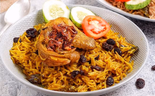 Nasi kebuli harum dengan lauk pilihan, cocok untuk acara spesial.